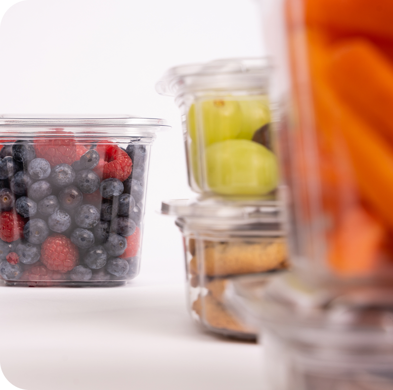 Our stock product lines are designed with clean lines and minimal ribbing for exceptional product clarity. As a versatile plastic food container manufacturer, we offer a wide variety of shapes and sizes for your needs. We also provide you with the opportunity to add logo inserts to our stock products that showcase your brand.